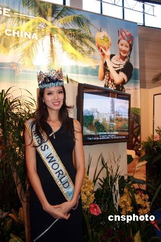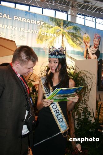 3月5日,2008柏林國際旅游展(ITB BERLIN)開幕,展覽為期5天將持續(xù)到9日。圖為第57屆世界小姐張梓琳作為“三亞形象大使”出現(xiàn)在展館。中新社發(fā) 關(guān)向東 攝