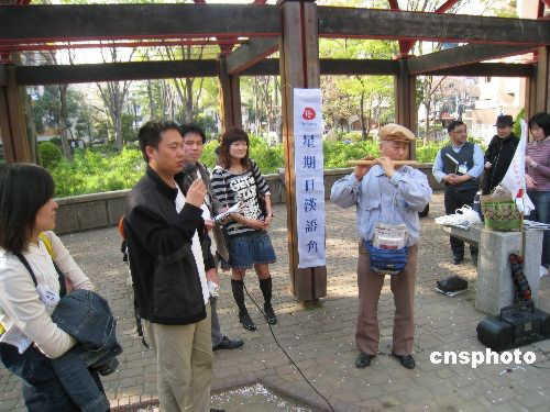 4月6日,日本僑報(bào)社創(chuàng)辦的星期日漢語(yǔ)角在東京西池袋公園舉行第34次交流活動(dòng)。參加者用日中兩國(guó)語(yǔ)言演唱了《北國(guó)之春》、《大海啊故鄉(xiāng)》等中日名曲,贏得在場(chǎng)人員的陣陣掌聲。中新社發(fā) 段躍中 攝