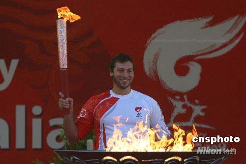 4月24日中午11時35分,澳大利亞泳壇名將、“飛魚”索普用手中的“祥云”火炬點燃圣火盆,北京奧運圣火在澳大利亞首都堪培拉的傳遞順利結(jié)束。北京奧運圣火在堪培拉的傳遞從和解廣場開始后,途經(jīng)戰(zhàn)爭紀念館、高等法院、國家圖書館、國會大廈等地,最終于中午12時左右在聯(lián)邦公園點燃圣火盆并舉行慶典儀式?芭嗬瓊鬟f路線全長約15公里,80位火炬手,平均每人傳遞190米左右。