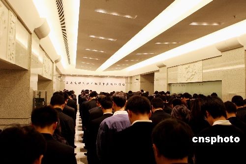 當(dāng)?shù)貢r間5月19日凌晨2時28分,中國駐紐約總領(lǐng)館全體工作人員為在四川地震中遇難的同胞默哀三分鐘,表達(dá)沉痛哀悼之情。中新社發(fā) 譚宏偉 攝