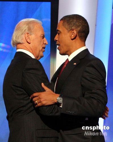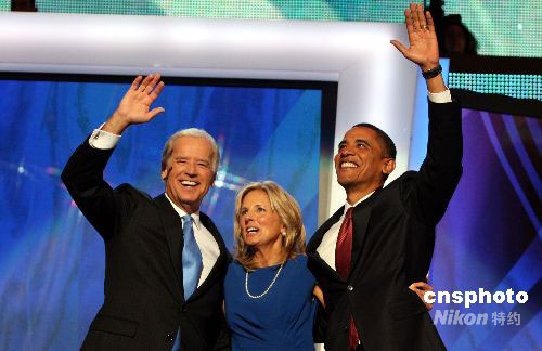 當地時間8月27日,美國民主黨全國代表大會正式提名伊利諾伊國會參議員奧巴馬和特拉華州國會參議員拜登為總統(tǒng)、副總統(tǒng)候選人。中新社發(fā) 李靜 攝