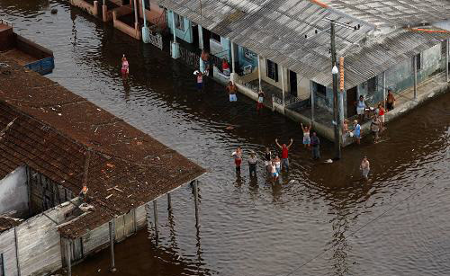 9月11日,在古巴比那爾德里奧省,房屋浸泡在洪水里。