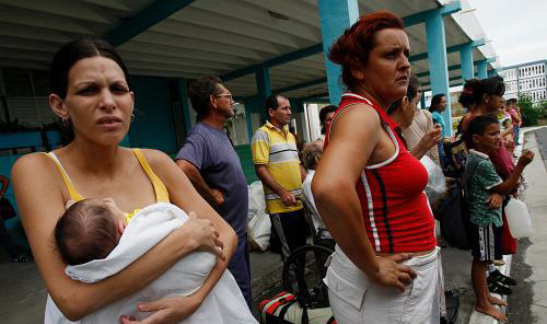 9月11日,在古巴比那爾德里奧省的一個避難所,當(dāng)?shù)鼐用竦却丶摇?br>