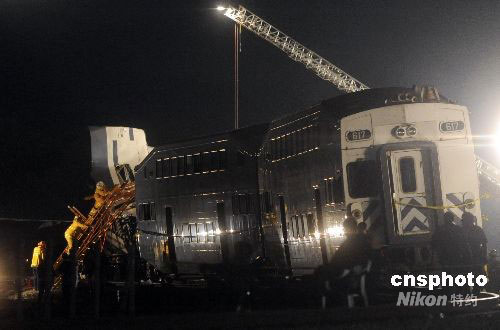 美國(guó)洛杉磯近郊當(dāng)?shù)貢r(shí)間九月十二日下午發(fā)生一起客運(yùn)列車與貨運(yùn)列車相撞的嚴(yán)重事故,至少造成十人死亡,一百三十五人受傷。當(dāng)晚,救援人員仍在現(xiàn)場(chǎng)搜救,警方估計(jì)死亡人數(shù)很可能還會(huì)上升。中新社發(fā) 張煒 攝