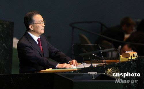 25日,中國總理溫家寶在紐約聯合國總部舉行的聯合國千年發(fā)展目標高級別會議上發(fā)表演講,呼吁發(fā)達國家要承擔起幫助不發(fā)達國家的責任。中新社發(fā) 李靜 攝