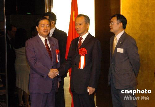 9月26日晚,中國(guó)駐日大使崔天凱在東京舉行盛大的國(guó)慶招待會(huì),與日本各界人士、在日華僑華人代表共慶中華人民共和國(guó)成立五十九周年,一千五百余人應(yīng)邀出席。圖為日本執(zhí)政黨之一的公明黨黨首太田昭宏(左)出席招待會(huì)時(shí)與崔天凱大使交流。中新社發(fā) 段躍中 攝