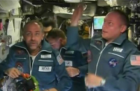 經(jīng)過兩天飛行,搭載美俄兩名宇航員和世界第六位太空游客的俄羅斯“聯(lián)盟TMA-13”載人飛船14日與國際空間站成功對接。 美國國家航空和航天局發(fā)布的這張照片顯示,10月14日,世界第六位太空游客、美國電腦游戲開發(fā)商理查德·加里奧特(左)和美國宇航員邁克·芬克到達(dá)國際太空站。