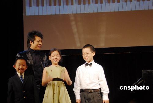 10月20日,美國錄音協(xié)會在紐約宣布任命中國青年鋼琴演奏家郎朗為格萊美中國文化大使。郎朗在免費音樂會上宣布成立“郎朗國際音樂基金”,鼓勵更多青少年接觸古典音樂,發(fā)掘更多音樂人才。圖為郎朗和首批獲得基金會獎學金的少年同臺獻藝。中新社發(fā) 李靜 攝