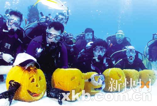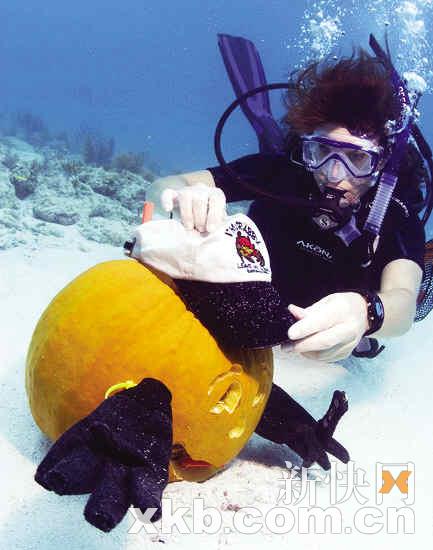 26日,美國佛羅里達州在海底舉辦了一場別開生面的南瓜雕刻大賽,吸引很多人參加,營造節(jié)日氣氛。