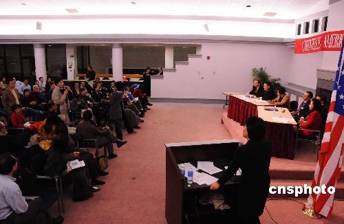當(dāng)?shù)貢r(shí)間十月二十八日晚,兩黨競(jìng)選陣營(yíng)代表在此間和美籍華人社區(qū)領(lǐng)袖舉行特別會(huì)議,就兩黨的競(jìng)選政策回答了華裔選民關(guān)注的問(wèn)題。圖為民主共和兩黨競(jìng)選陣營(yíng)代表和華裔選民交流。中新社發(fā) 邱江波 攝