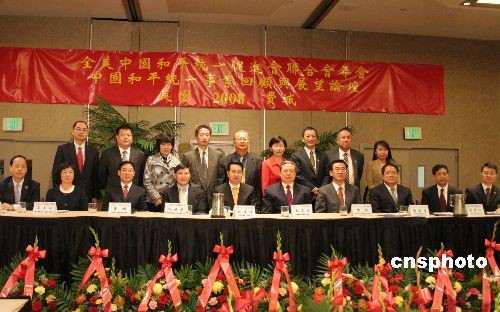 圖為全美中國和平統(tǒng)一促進(jìn)會(huì)成員與中國駐紐約總領(lǐng)事彭克玉、中國駐美大使館公使劉光源等合影留念。