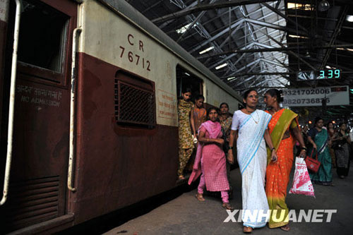 12月1日,乘客抵達(dá)印度孟買(mǎi)賈特拉帕蒂·希瓦吉火車(chē)站(CST火車(chē)站)。新華社記者 呂小煒攝