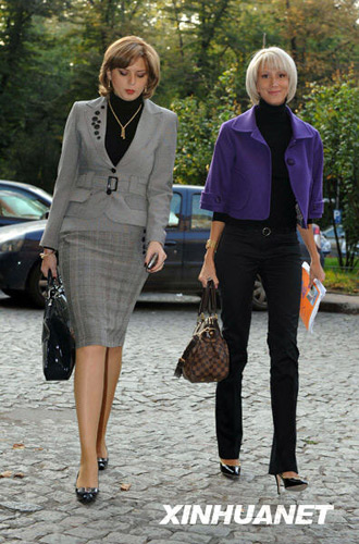 這是2008年9月29日,羅伯塔·阿納斯塔塞(左)與同事一起前往布加勒斯特的民主自由黨總部開會(huì)的資料照片。