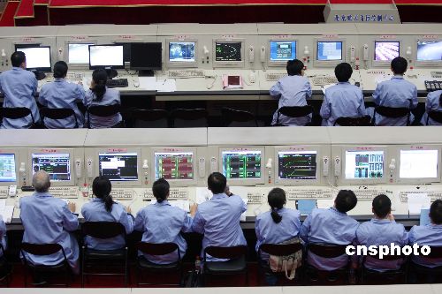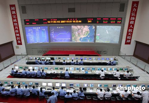 十月二十四日下午,北京航天飛行控制中心工作人員在做嫦娥一號衛(wèi)星發(fā)射前的最后準(zhǔn)備。中國首顆月球探測衛(wèi)星——嫦娥一號發(fā)射工作已經(jīng)準(zhǔn)備就緒,計(jì)劃于當(dāng)日十八點(diǎn)零五分發(fā)射。中新社發(fā) 毛建軍 攝