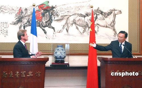 十月三十一日,中國外交部部長楊潔篪在北京與法國外交部部長貝爾納·庫什內(nèi)舉行會談并共同會見中外記者。中新社發(fā) 廖文靜 攝