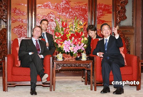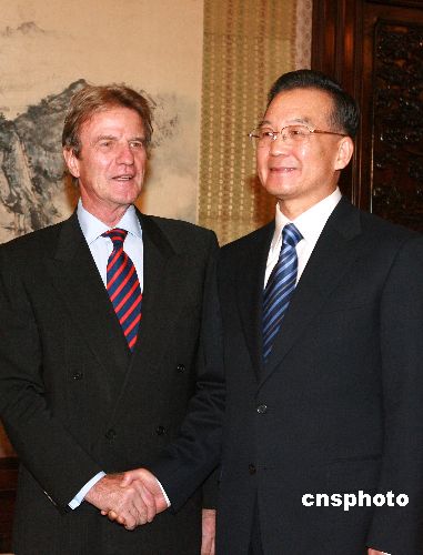 十月三十一日,中國國務(wù)院總理溫家寶在北京會見法國外交部部長貝爾納·庫什內(nèi)。中新社發(fā) 廖文靜 攝