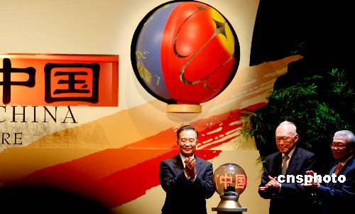 在新加坡內(nèi)閣資政李光耀的倡議和帶動下,新加坡中華總商會成立了“通商中國”組織,致力搭建促進(jìn)中新兩國文化和工商界交流的務(wù)實(shí)新平臺。對此新舉,中國也給予了積極回應(yīng)。中國國務(wù)院總理溫家寶十九日在新加坡大學(xué)演講時(shí)表示,中國希望“通商中國”為中新關(guān)系發(fā)展開創(chuàng)新的天地。圖為溫家寶總理在演講前,與新加坡內(nèi)閣資政李光耀共同參與“通商中國”啟動儀式。中新社發(fā) 周群 攝