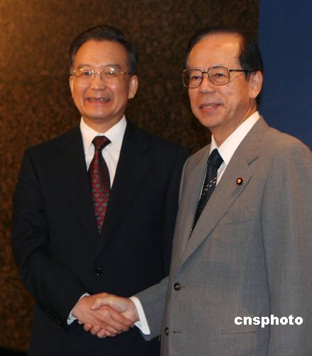 中國國務(wù)院總理溫家寶十一月二十日在新加坡會見日本首相福田康夫,這是兩位領(lǐng)導(dǎo)人的首次會晤。中新社發(fā) 周群 攝