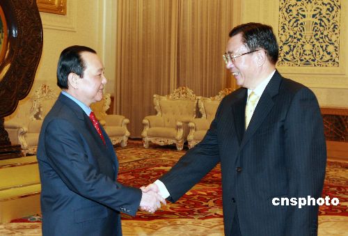 十一月二十日,中共中央政治局常委、中央紀(jì)委書記賀國強(qiáng)在北京人民大會堂會見越共中央政治局委員黎清海。中新社發(fā) 廖文靜 攝