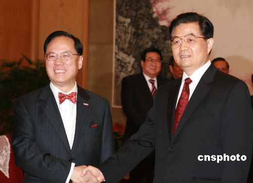 十一月二十三日,國(guó)家主席胡錦濤在北京會(huì)見(jiàn)來(lái)京述職的香港特別行政區(qū)行政長(zhǎng)官曾蔭權(quán)。中新社發(fā) 廖文靜 攝