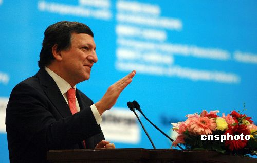 十一月二十八日,第四屆中歐工商峰會在北京人民大會堂閉幕。歐盟委員會主席巴羅佐在閉幕式上作主旨講話。中新社發(fā) 廖文靜 攝