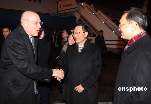 美國財(cái)長鮑爾森十二月十日深夜乘專機(jī)抵達(dá)北京,率領(lǐng)美國代表團(tuán)出席第三次中美戰(zhàn)略經(jīng)濟(jì)對(duì)話。中新社發(fā) 毛建軍 攝