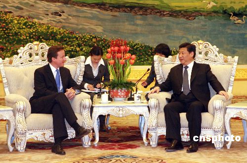 十二月十九日,中共中央政治局常委、書記處書記習(xí)近平在北京人民大會堂會見了由英國保守黨領(lǐng)袖戴維·卡梅倫率領(lǐng)的英國保守黨代表團(tuán)。中新社發(fā) 廖文靜 攝