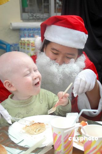 十二月二十一日,三亞凱萊度假酒店的圣誕天使們來到三亞福利院看望孤兒們,為他們送來食品和玩具。圣誕節(jié)將至,三亞一些企業(yè)或個人紛紛走進(jìn)福利院奉獻(xiàn)愛心,與這里的孩子們共享圣誕節(jié)的快樂。中新社發(fā) 尹海明 攝