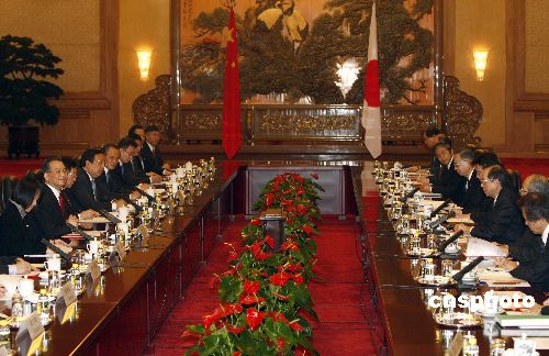 圖:溫家寶與日本首相福田康夫舉行會(huì)談