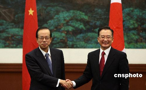 溫家寶與日本首相福田康夫在北京共見(jiàn)記者