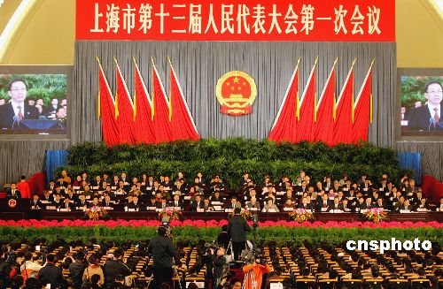1月24日上午9時,上海市第十三屆人民代表大會第一次會議在上海展覽中心中央大廳開幕。中新社發(fā) 湯彥俊 攝