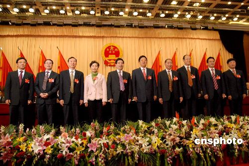 一月二十四日,云南省十一屆人大一次會議選舉產生新一屆云南省人民政府省長、副省長。圖為云南省委書記白恩培(右五)和當選云南省新一屆政府省長、副省長合影。從右至左為顧朝曦、高峰、孔垂柱、羅正富、白恩培、秦光榮、李江、劉平、曹建方、和段琪。中新社發(fā) 石雨 攝