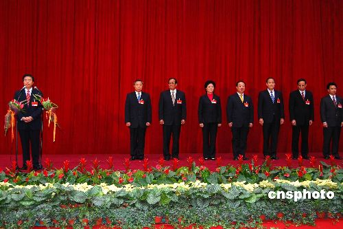 1月24日下午,廣東省十一屆人大一次會議舉行第四次全體會議,大會選舉黃華華為廣東省省長,黃龍?jiān)、李容根、雷于藍(lán)、宋海、佟星、林木聲、萬慶良為副省長。圖為黃華華同各位副省長一同出席記者招待會。中新社發(fā) 柯小軍 攝