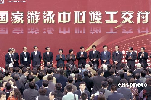 圖:劉淇、郭金龍等出席國(guó)家游泳中心竣工儀式