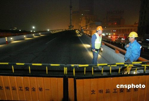 2月23日零時,隨著最后一輛車的通過,素有“亞洲第一彎”之稱的上海延安路高架外灘匝道正式封閉,拆除工作也隨之開始,此舉標(biāo)志著外灘地區(qū)交通綜合改造工程全面展開。中新社發(fā) 湯彥俊 攝
