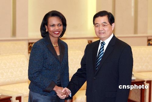 圖:胡錦濤會(huì)見美國國務(wù)卿賴斯