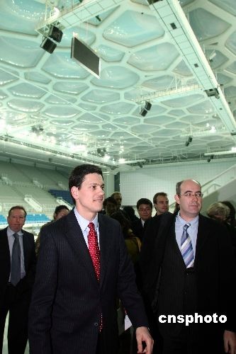 圖:英國外交大臣米利班德參觀中國國家游泳中心
