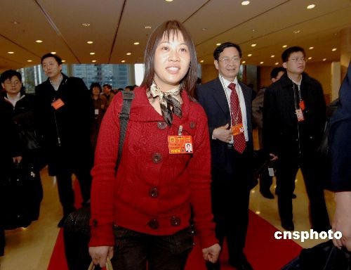 圖:中國農(nóng)民工代表胡小燕抵京參加“兩會”