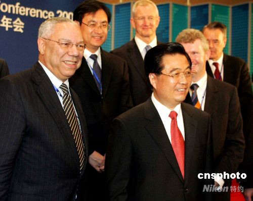 圖:胡錦濤在博鰲會(huì)見(jiàn)美國(guó)前國(guó)務(wù)卿鮑威爾