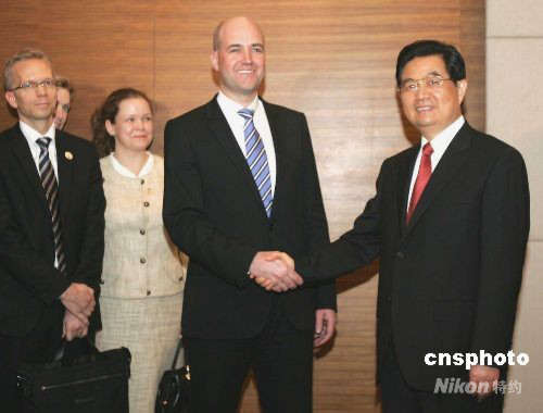 圖:胡錦濤在博鰲會(huì)見瑞典首相