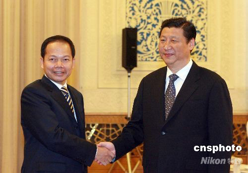 4月14日,中國國家副主席習近平在北京人民大會堂會見來訪的泰國外長諾帕敦。中新社發(fā) 廖文靜 攝
