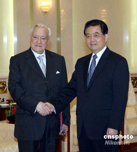胡錦濤會(huì)見法國參議院議長蓬斯萊一行