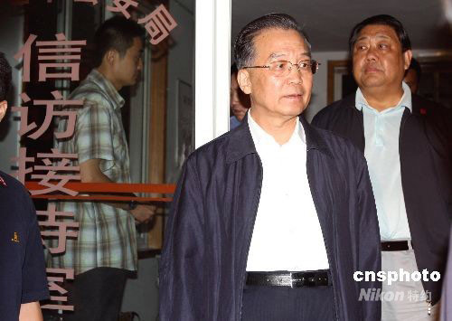 5月12日14時28分,在四川汶川縣(北緯31度,東經(jīng)103.4度)發(fā)生7.8級地震。溫家寶總理于當晚20時抵達都江堰,現(xiàn)場指揮抗震救災。 中新社發(fā) 黃榮 攝