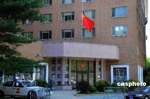 五月十九日,中國(guó)為四川地震死難者進(jìn)行全國(guó)哀悼的第一天,坐落美國(guó)華盛頓特區(qū)西北區(qū)的中國(guó)駐美國(guó)大使館降半旗,悼念死難同胞。