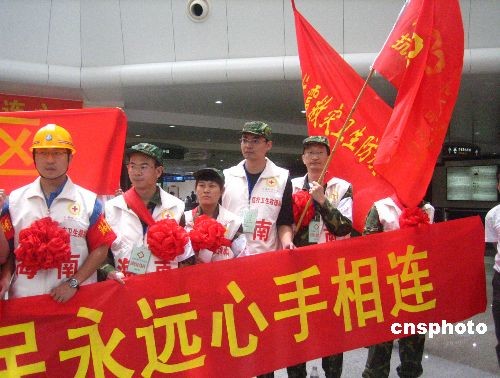 五月二十日,首批海南青年醫(yī)療衛(wèi)生抗震救災志愿者服務隊共二十五人,從?诿捞m機場出發(fā),前往四川綿陽平武縣抗震救災。該批具有專業(yè)醫(yī)療技能及抗震經(jīng)驗的志愿者,來自海南省人民醫(yī)院、海南省及各市縣疾控中心,由海南省衛(wèi)生廳及共青團海南省委共同招募。