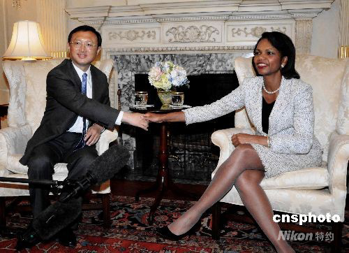 7月28日,正在美國(guó)華盛頓訪(fǎng)問(wèn)的中國(guó)外交部長(zhǎng)楊潔篪與美國(guó)國(guó)務(wù)卿賴(lài)斯舉行會(huì)談。中新社發(fā) 邱江波 攝