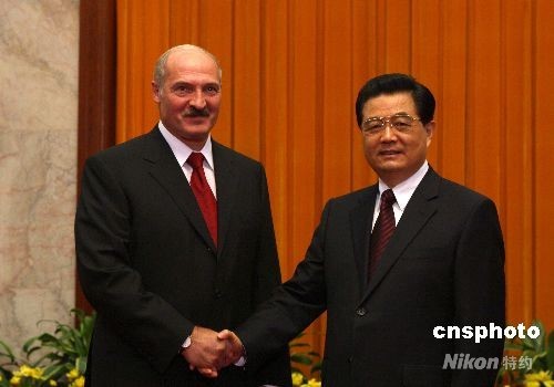 8月7日,中國國家主席胡錦濤在北京人民大會堂會見應邀出席北京奧運會開幕式的白俄羅斯總統(tǒng)盧卡申科。中新社發(fā) 廖文靜 攝