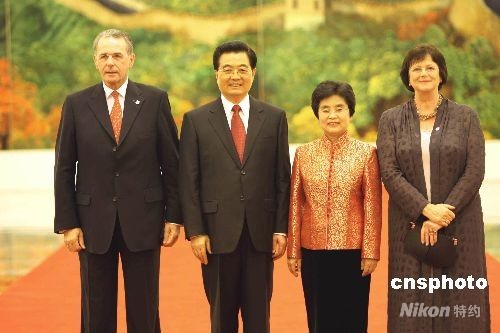 圖:胡錦濤夫婦歡迎羅格出席北京奧運會