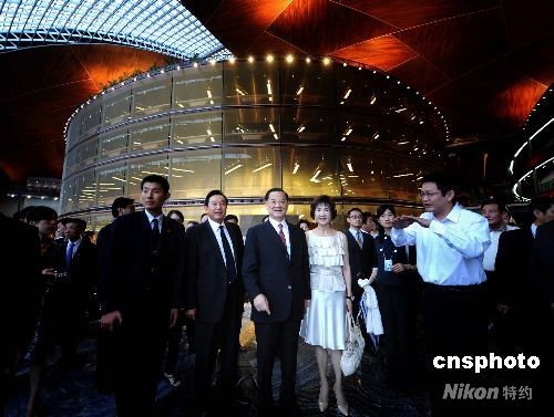 圖:陳云林陪同連戰(zhàn)參觀國家大劇院