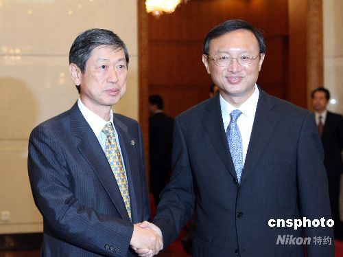 8月17日,中國外交部部長楊潔篪在北京釣魚臺國賓館會見日本外相高村正彥。中新社發(fā) 廖文靜 攝